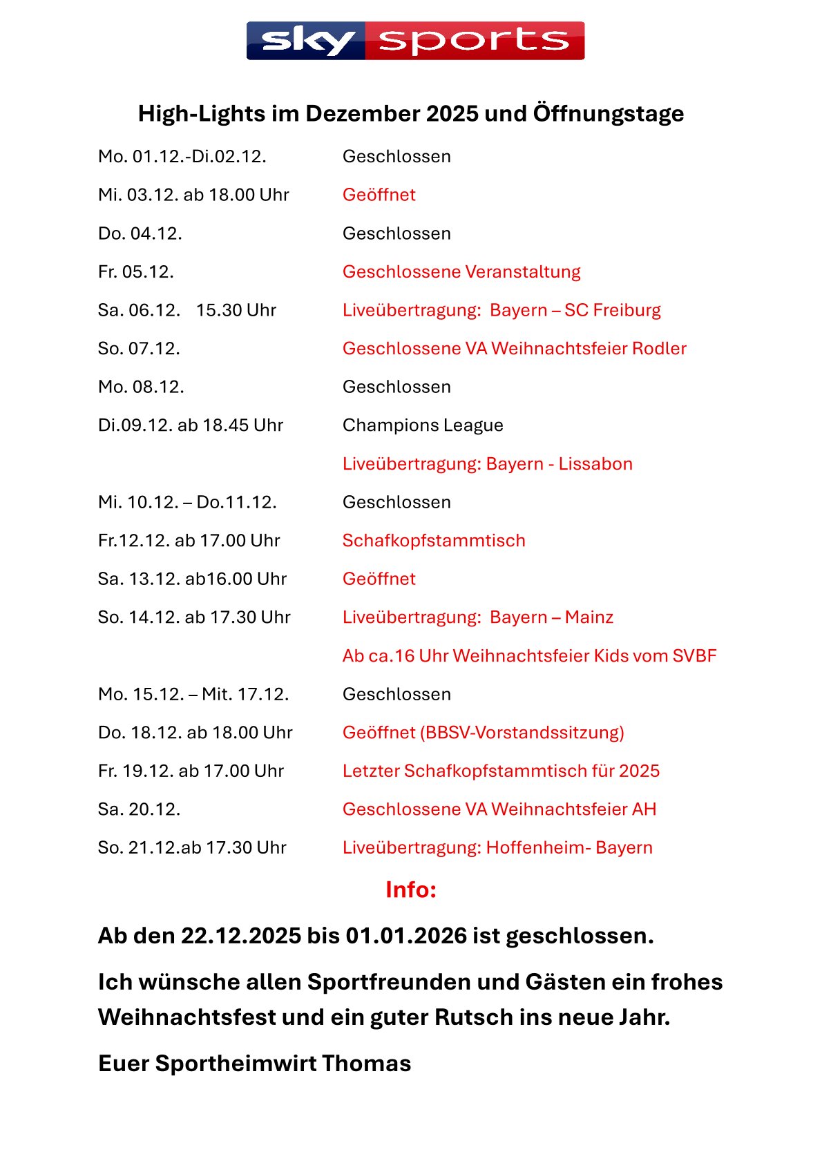 Highlights Dezember 2025 Sportverein Bad Feilnbach2025-12-09T18:39:27+00:009. Dezember 2025|Highlight, Verein| Ähnliche Beiträge Hallenbelegungsplan Winter 2025/2026 Hallenbelegungsplan Winter 2025/2026 12. November 2025 Highlights November 2025 Highlights November 2025 5. November 2025 Highlights Oktober 2025 Highlights Oktober 2025 8. Oktober 2025