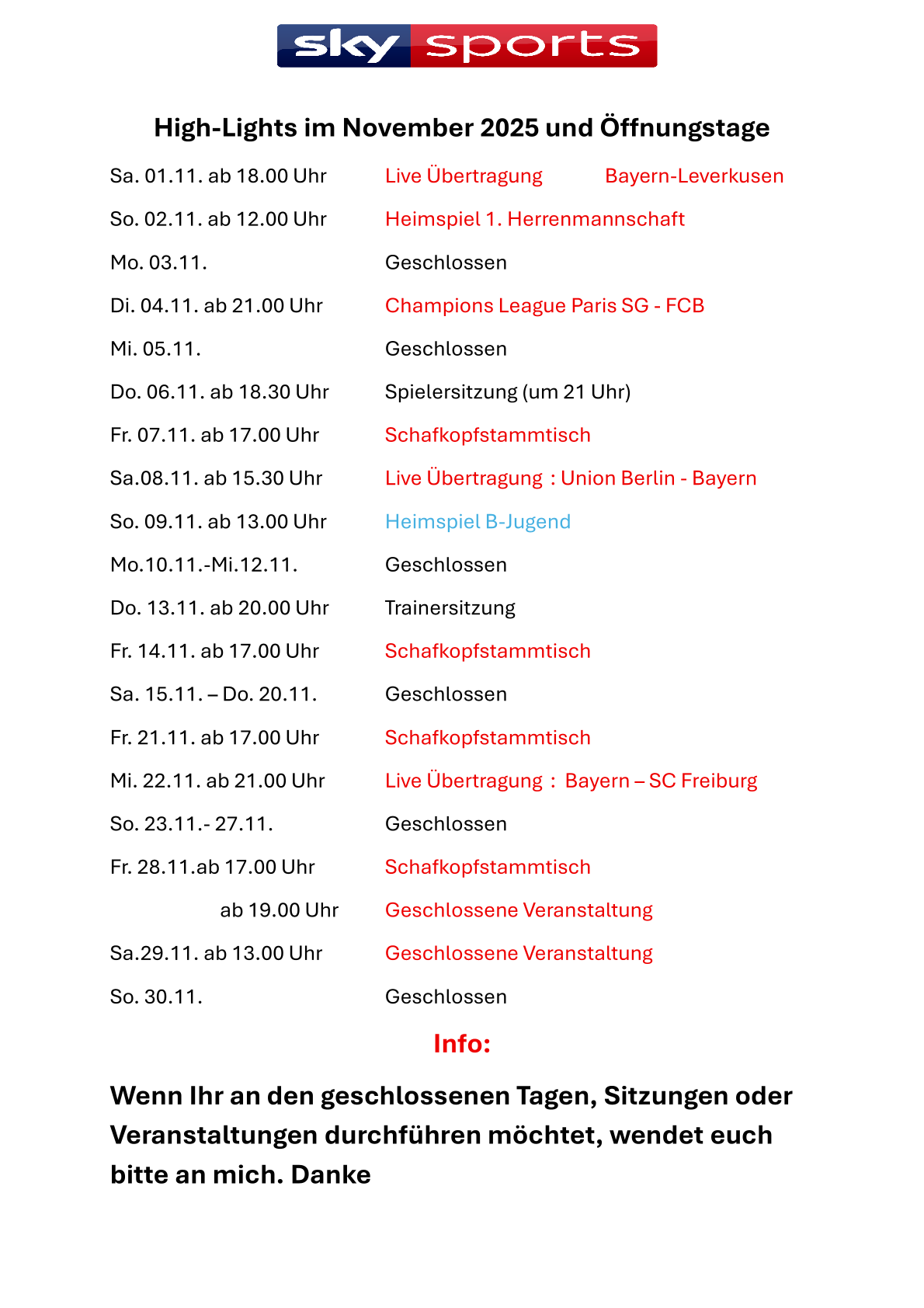 Highlights November 2025 Sportverein Bad Feilnbach2025-11-05T11:37:04+00:005. November 2025|Highlight, Verein| Ähnliche Beiträge Hallenbelegungsplan Winter 2025/2026 Hallenbelegungsplan Winter 2025/2026 12. November 2025 Highlights Oktober 2025 Highlights Oktober 2025 8. Oktober 2025 Neue Öffnungszeiten ab September 2025 Neue Öffnungszeiten ab September 2025 29. August 2025