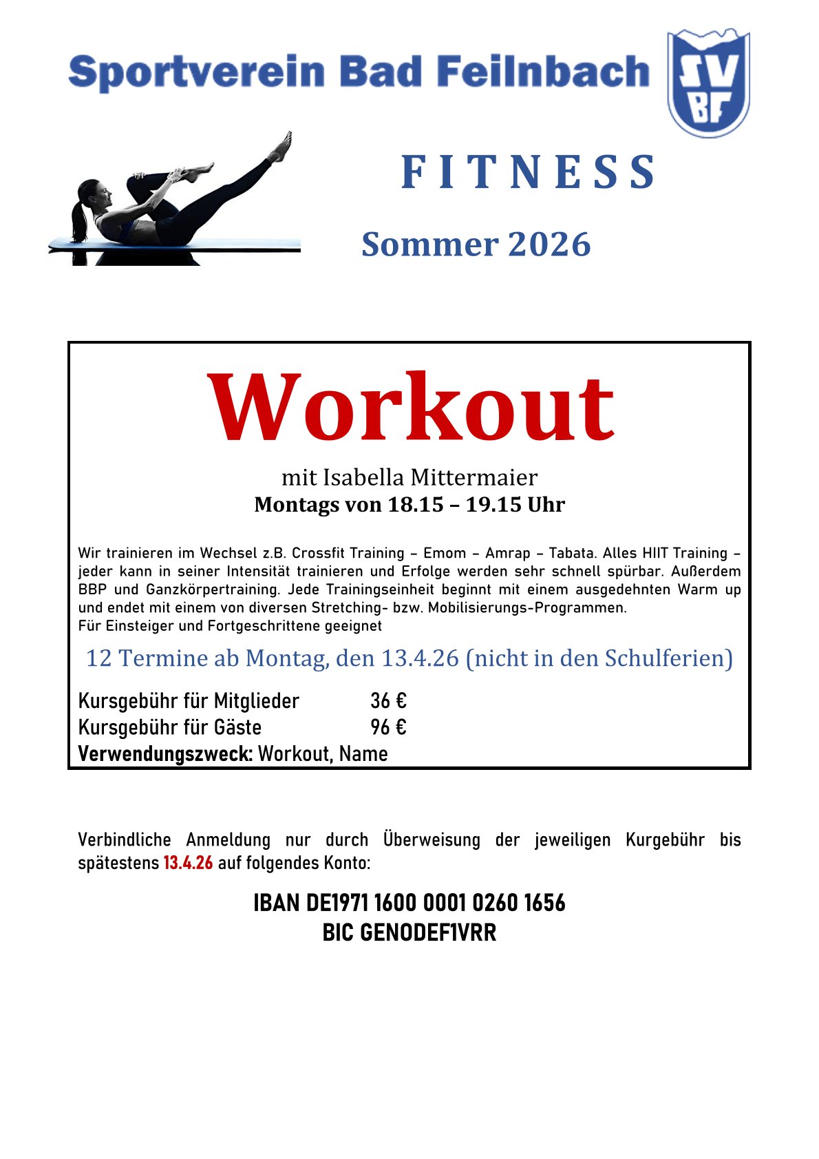 12 Termine ab Montag den 13.04.26 bis zu den Sommerferien